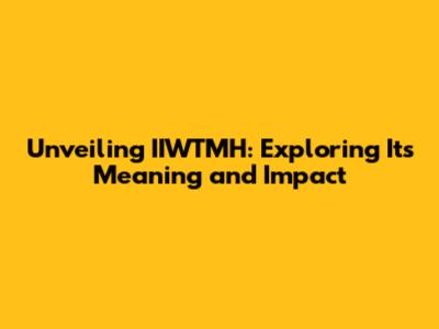 Decoding the Acronym: What Does IIWTMH Stand For?