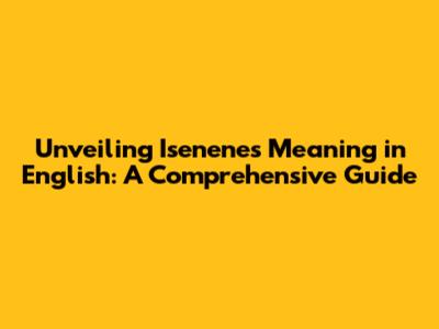 Hey everyone, let's dive into the fascinating world of language and explore the meaning of "Isenene" in English! You might have stumbled upon this word and wondered, "What does Isenene mean in English?" Well, you're in the right place! We're going to break down its meaning, explore its origins, and even touch upon its usage. So, buckle up, and let's unravel the mystery of Isenene!