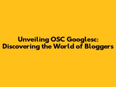 Hey everyone! Today, we're diving deep into the fascinating world of OSC Googlesc, and how it helps us discover the awesome bloggers out there. If you're anything like me, you love finding new voices, perspectives, and ideas online. Bloggers are the heart and soul of this, so let's explore how OSC Googlesc makes this discovery process easier and more fun. Get ready to uncover some hidden gems, because this is going to be an exciting ride!