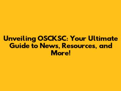 Why OSCKSC Matters: Unveiling the Benefits