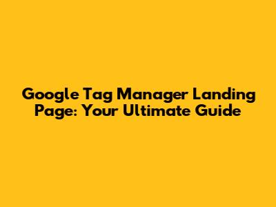 Google Tag Manager Landing Page: Your Ultimate Guide
