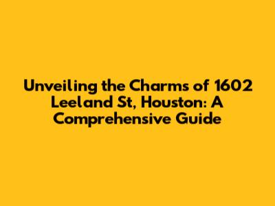 Hey there, property enthusiasts! Ever found yourself curious about a specific address and what it holds? Today, we're diving deep into 1602 Leeland St, Houston, TX 77003. This isn't just a random set of numbers and letters; it's a gateway to understanding a piece of Houston's vibrant real estate scene. We're going to explore everything from the property details to the neighborhood vibe, helping you get a complete picture of what this address offers. So, grab a coffee, settle in, and let's get started on this exciting journey of discovery. Whether you're a potential buyer, a curious investor, or just someone who loves a good property deep dive, this guide is for you! We'll cover all the important aspects, ensuring you have a comprehensive understanding of what 1602 Leeland St has to offer. Let's start with the basics, shall we?