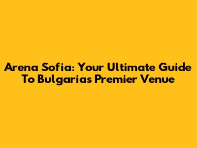 Arena Sofia: Your Ultimate Guide To Bulgaria's Premier Venue
