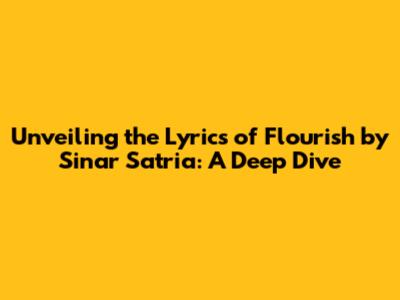 Unveiling The Lyrics Of Flourish By Sinar Satria: A Deep Dive