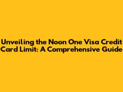 Understanding the Noon One Visa Credit Card Limit