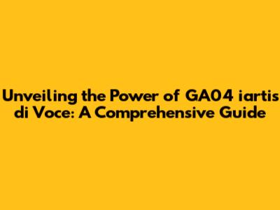 Hey guys, let's dive into the fascinating world of GA04 iartis di Voce. We're going to explore what it is, how it works, and why it's becoming such a hot topic. This guide is designed to be super easy to understand, so whether you're a techie or just curious, you're in the right place. We'll break down the basics, discuss its applications, and even touch upon its potential future. Get ready to have all your questions answered and maybe even learn a thing or two! Let's get started.