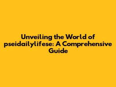 Unveiling The World Of Pseidailylifese: A Comprehensive Guide