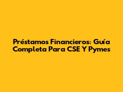 Préstamos Financieros: Guía Completa Para CSE Y Pymes