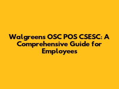Hey everyone! So, you're probably here because you're a Walgreens employee, maybe a bit new to the scene, or perhaps you're just looking to brush up on your skills regarding the OSC POS Walgreens CSESC system. Don't worry, guys, you've come to the right place! We're going to dive deep into what this all means and how it can make your job a whole lot smoother. Think of this as your ultimate cheat sheet, packed with all the info you need to navigate the OSC POS Walgreens CSESC like a pro. We'll cover everything from the basics to some more advanced tips and tricks that will boost your efficiency and confidence on the job. So, grab a coffee, get comfy, and let's get this knowledge party started!