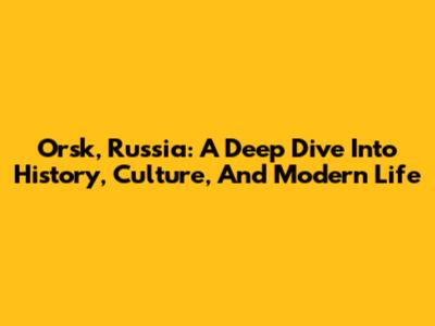 Orsk, Russia: A Deep Dive Into History, Culture, And Modern Life