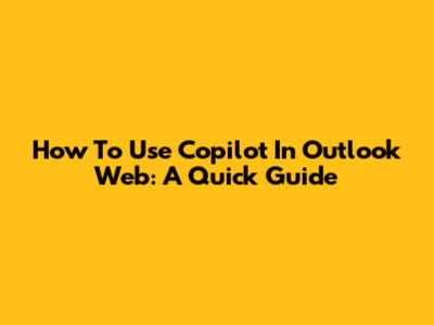 How To Use Copilot In Outlook Web: A Quick Guide