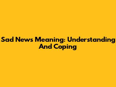 Sad News Meaning: Understanding And Coping