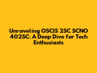 Hey tech-heads, let's talk about a piece of the puzzle you might be scratching your head over: OSCIS 2SC SCNO 402SC. You've probably stumbled upon this string of characters while deep in the tech trenches, maybe troubleshooting, maybe looking for a specific component, or perhaps just curious about what it all means. Well, guys, you've come to the right place! We're going to break down what OSCIS 2SC SCNO 402SC likely refers to, explore its potential context, and shed some light on its significance in the vast world of technology. It's not just a random jumble of letters and numbers; it's a identifier, a label that points to something specific, and understanding it can be super helpful. Think of it like a serial number for a particular type of gadget, a code for a specific setting, or a designation for a unique process. While the exact meaning can be elusive without more context, we can make some educated guesses based on common tech naming conventions and structures. So, buckle up, and let's decode this mystery together! We'll go through what each part might signify and how these identifiers play a crucial role in keeping our digital lives running smoothly. It's all about precision in the tech world, and these codes are a big part of that precision.