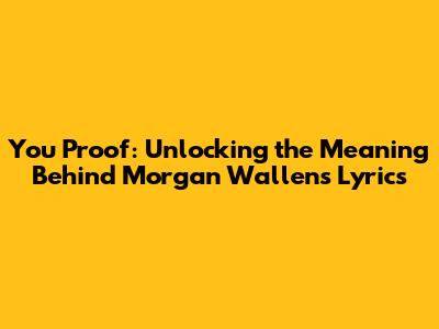 Hey guys! Today, we're diving deep into one of Morgan Wallen's chart-toppers: "You Proof." This song has been stuck in everyone's head, and for good reason. It's catchy, relatable, and full of that signature Morgan Wallen vibe. But what's the real story behind those lyrics? Let's break it down and uncover the meaning layer by layer.