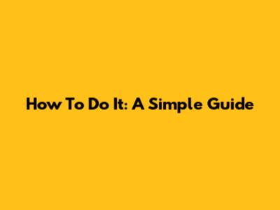 How To Do It: A Simple Guide